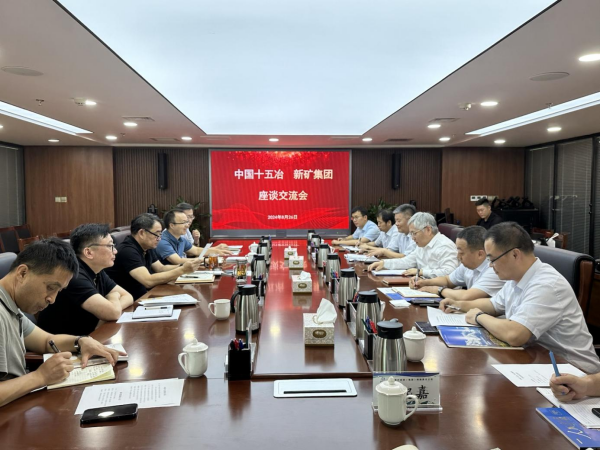 新矿集团副总经理胡永达,相关部门负责人;中国十五冶副总经理王宏林,总经理助理王平,市场开发部负责人及相关人员参加会谈。