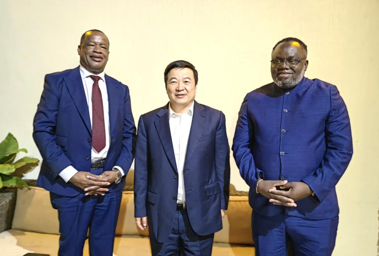 当地时间11月12日,正在赞比亚调研的中国有色集团董事长文岗应邀与赞比亚内政部长杰克·J·姆温布和矿业部长保罗·卡布斯韦举行会晤,双方就加深政企合作和投资发展进行了交流。