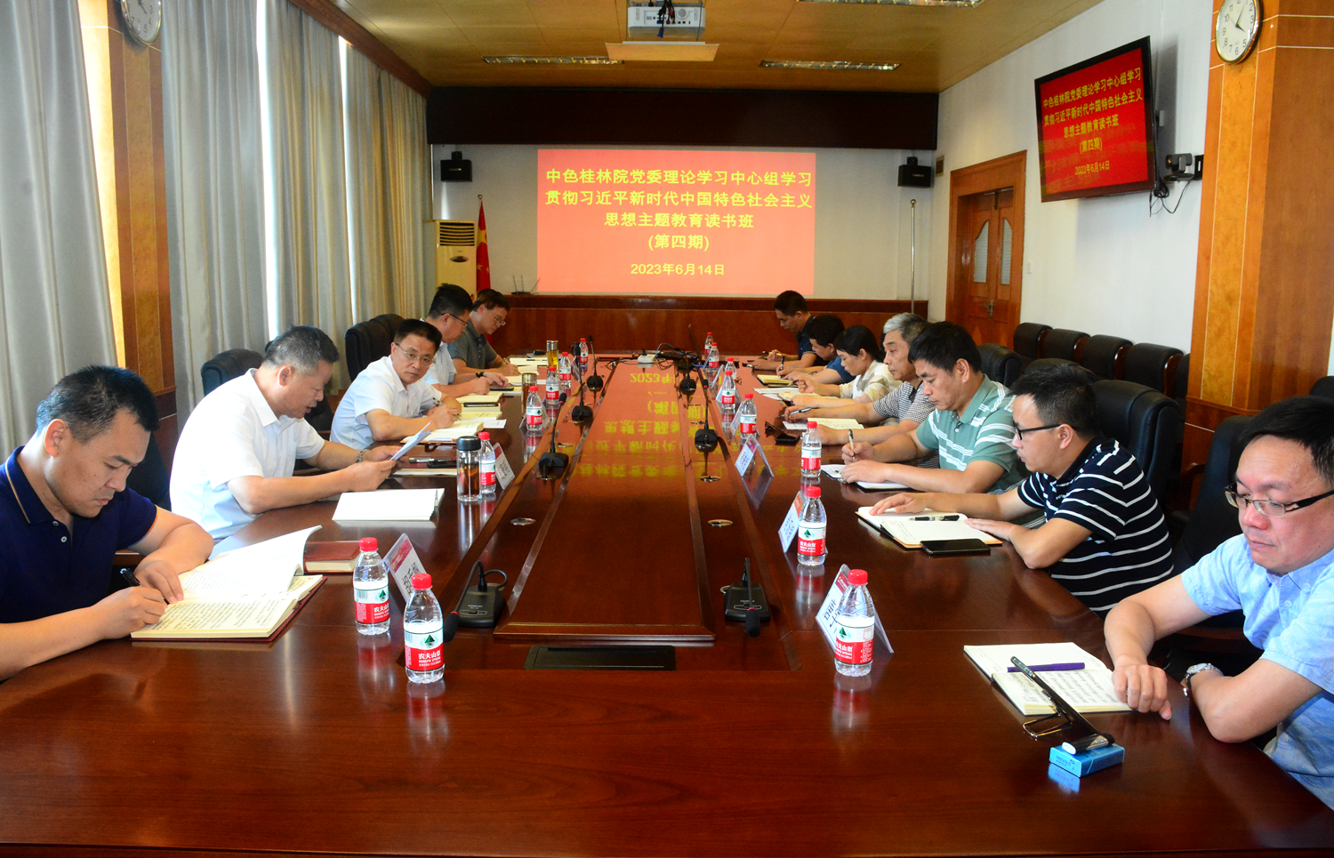6月14日和6月16日,中色桂林院党委举办理论学习中心组学习贯彻习近平新时代中国特色社会主义思想主题教育第四期读书班,闭门集中学习习近平总书记关于发展国有经济和国有企业改革发展党建有关重要论述及习近平总书记《论党的自我革命》、《习近平新时代中国特色社会主义思想专题摘编》、《习近平新时代中国特色社会主义思想学习纲要(2023年版)》等重点书目,并围绕习近平总书记对集团公司三次重要指示批示精神和人才强企主题开展学习研讨。中色桂林院党委副书记、董事长杨国高主持读书班,党委委员、纪委书记高贤明,党委委员、总会计师刘宗勇分别围绕习近平总书记对集团公司三次重要指示批示精神和人才强企主题作中心发言。