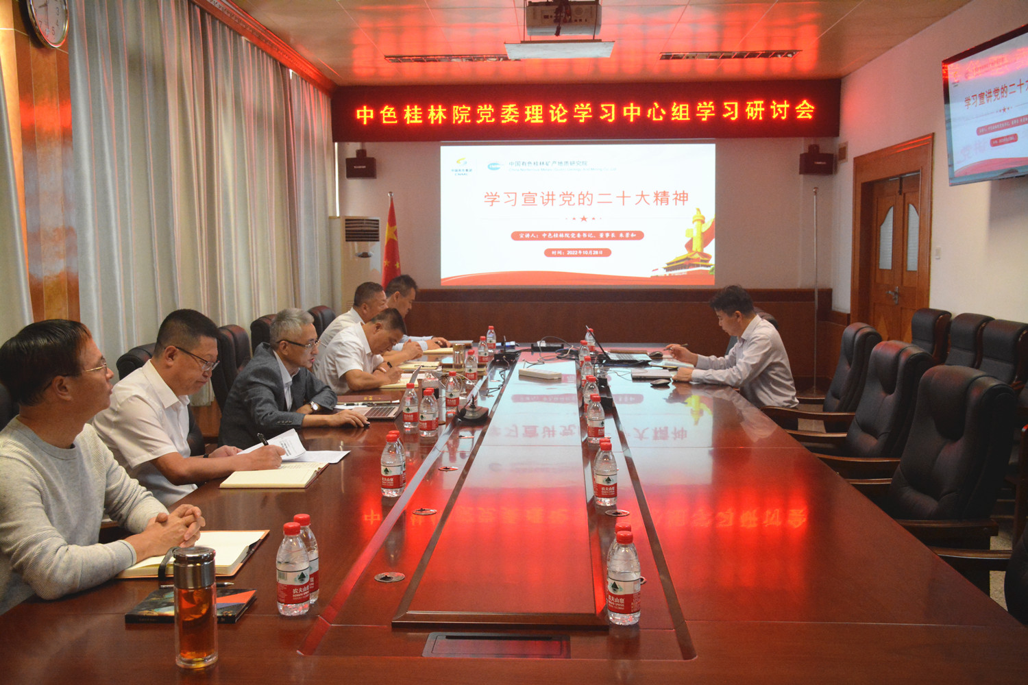 10月28日上午,中色桂林院召开党委理论学习中心组会议,专题学习党的二十大精神。党委书记、董事长朱景和主持会议,带头学习宣讲党的二十大精神并讲话。