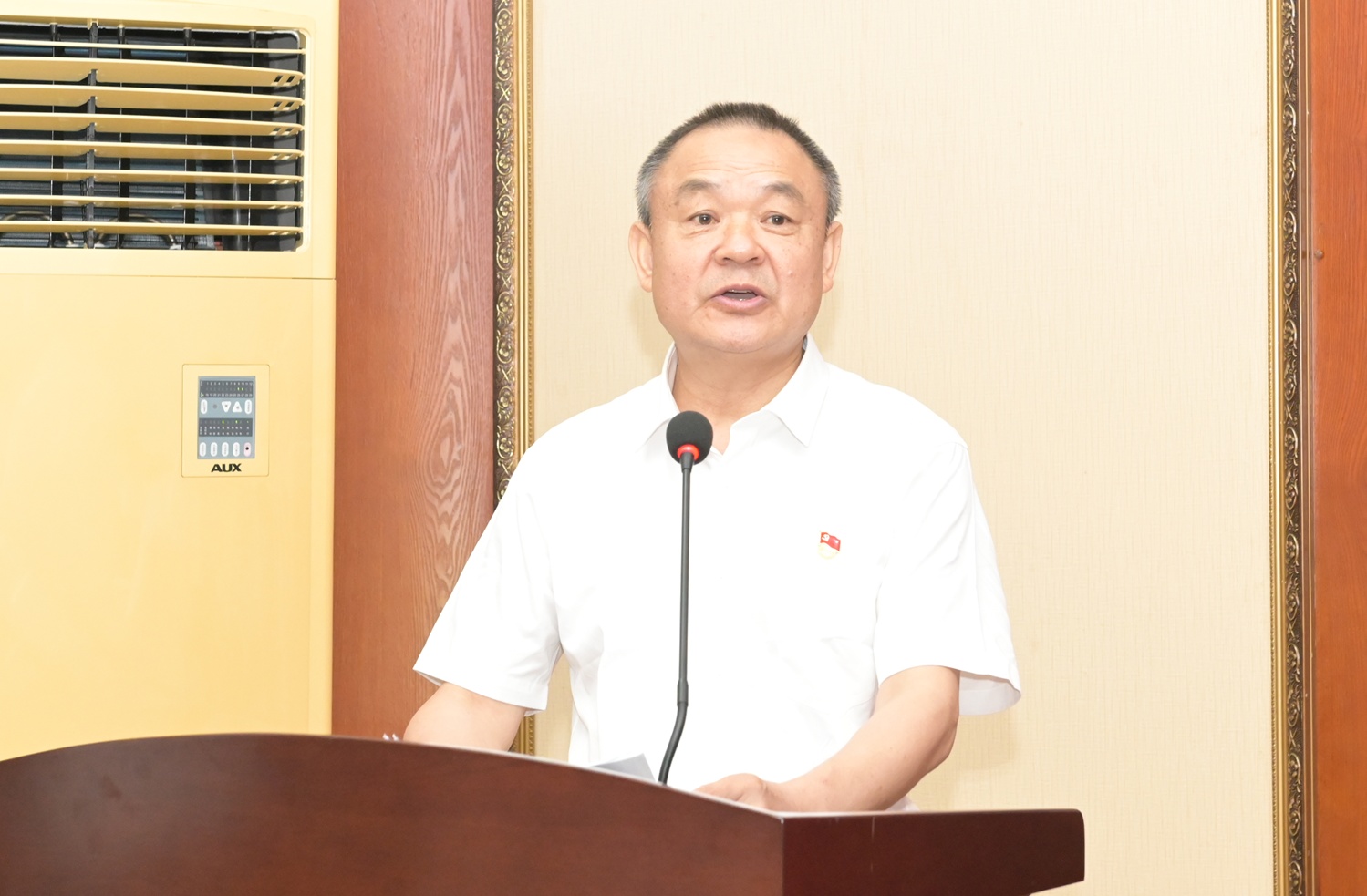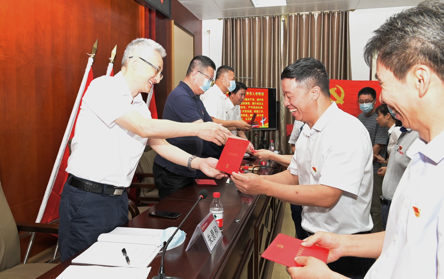 为新党员配戴党徽