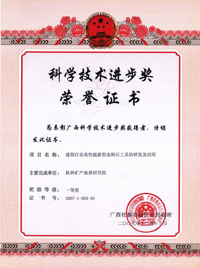 广西科技进步奖一等奖-2007年