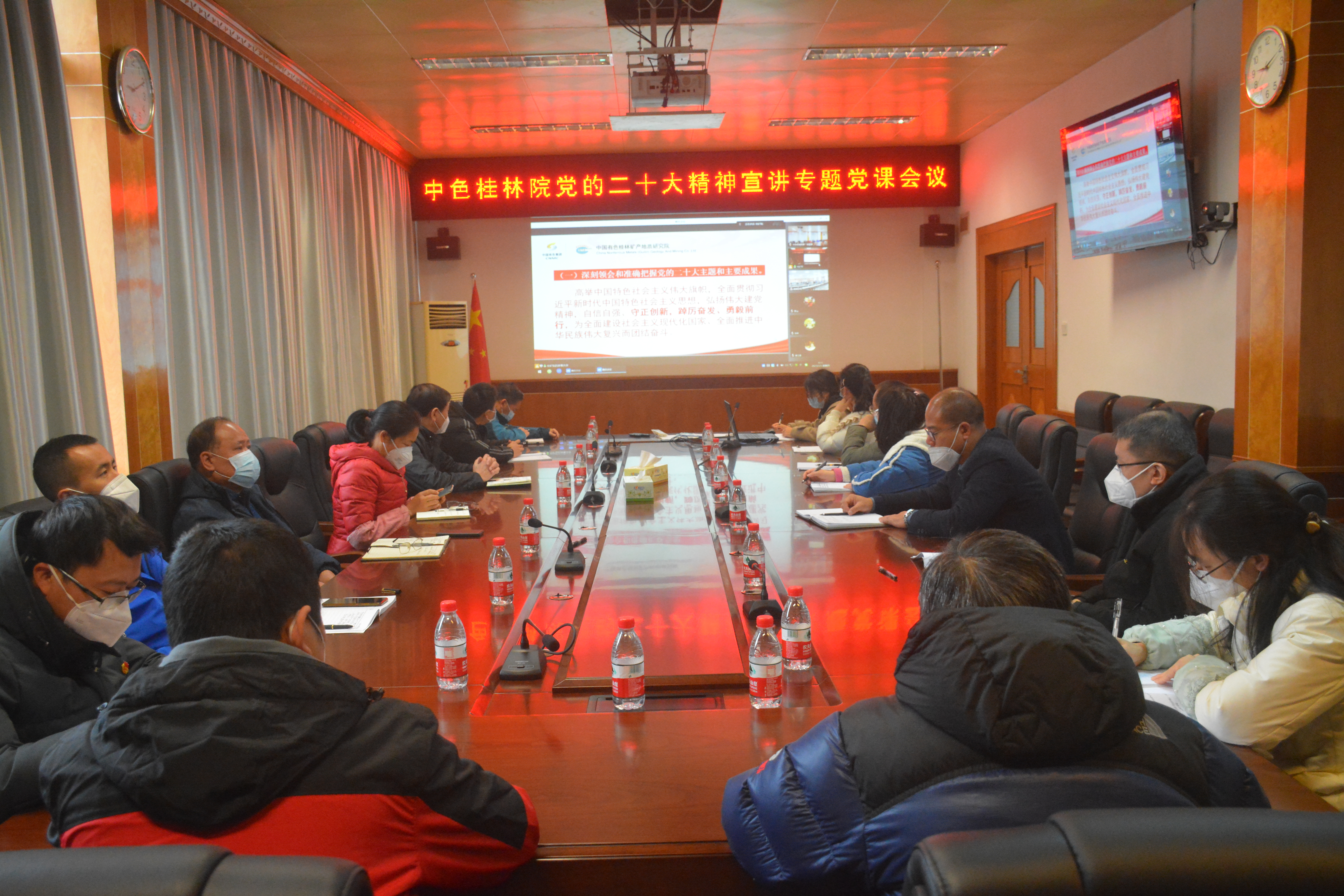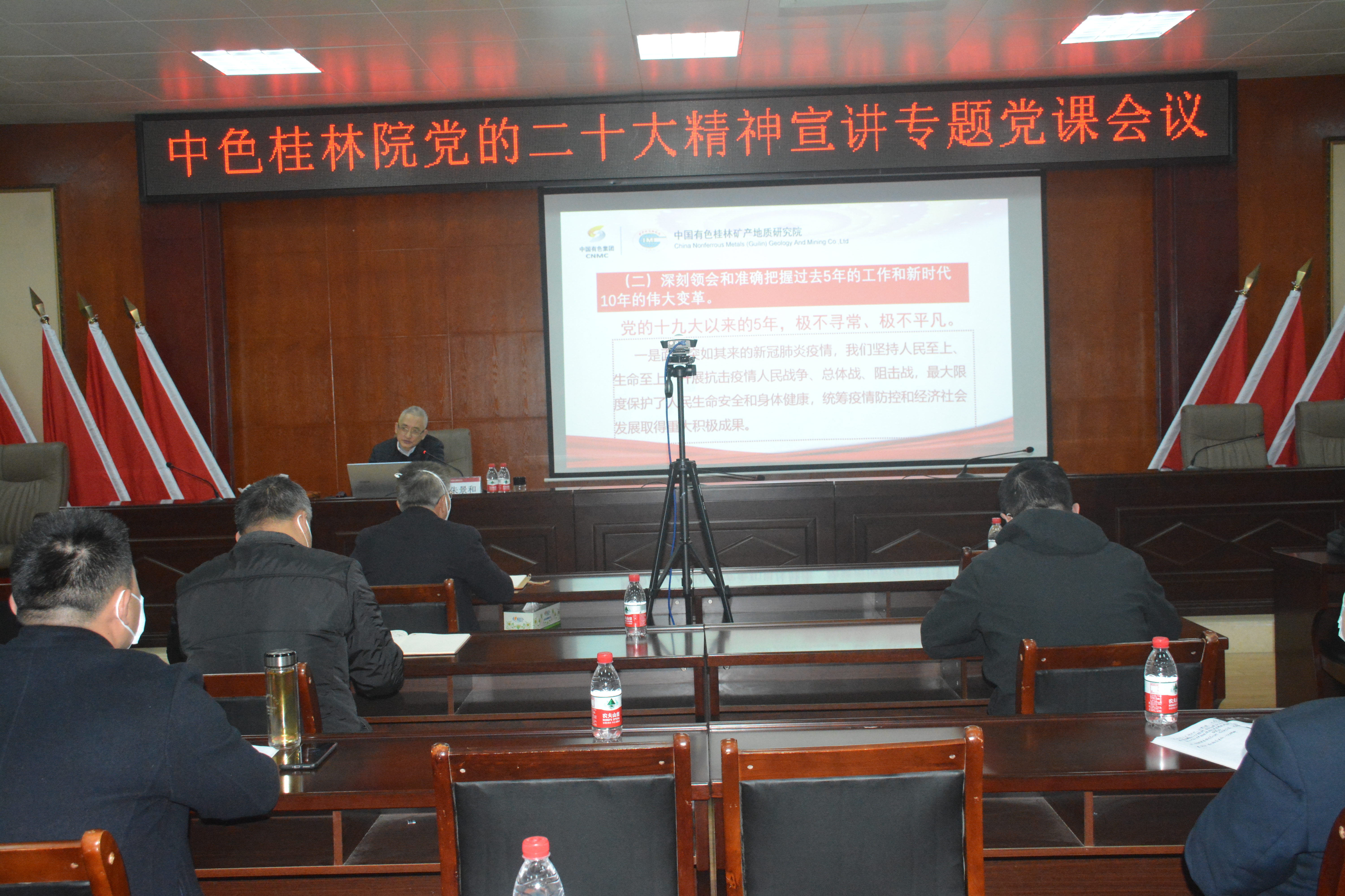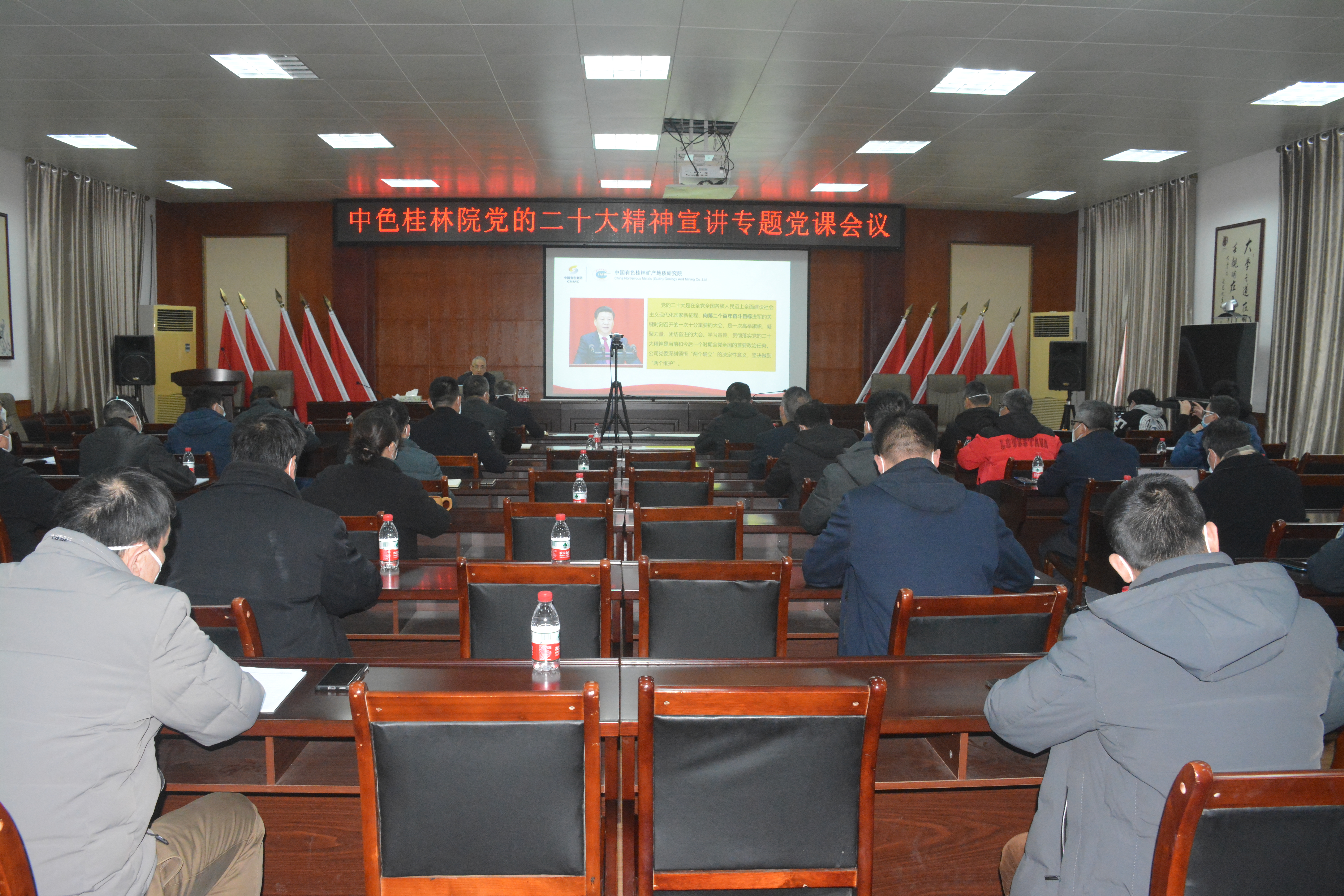 2023年1月5日,中色桂林院党委召开党的二十大精神宣讲专题党课会议,党委书记、董事长朱景和以《深入学习贯彻党的二十大精神,全方位提升企业核心竞争力,奋力开创中色桂林院高质量发展新局面》为题讲专题党课、团课,宣讲党的二十大精神,传达集团公司党委有关工作部署,并就全方位提升企业核心竞争力,开创中色桂林院高质量发展新局面提出要求。