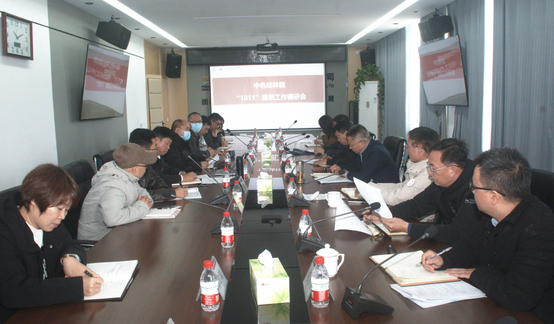 调研期间,杨国高先后听取了特邦公司、矿产地质(研究所)事业部、生态环境(研究所)事业部等三家单位主要负责人关于未来五年经济指标、市场布局、业务布局、投资重点及支撑条件的汇报,和业务单位与会骨干人员一起就“1011”规划实施进行了开放式探讨,明确了各业务板块发展方向、实施路径和具体目标。杨国高强调,1011规划是中国有色集团奚正平董事长经过两次深入公司调研,基于公司深厚的文化底蕴、科研底蕴和当前发展需求而提出的,公司必须按照奚正平董事长提出的“敢想、真干、持续”的理念谋划未来发展。杨国高指出公司已具备实施“1011”规划的充分条件:一是集团公司在科研资金、政策等方面给予空前支持力度,推动公司进入发展转型的最好时期;二是集团公司在大地质方面给予大力支持,通过内部整体协同,全力推进矿山管家服务模式;三是公司负债率在50%以下,有一定的融资能力解决发展所需资金问题;四是整个集团发展势头强劲,为公司服务集团提供了良好条件。杨国高要求,公司要进一步深化“1011”含义,2027年要实现10亿元生产经营收入,2026年实现1亿元利润总额,最后一个“1”拓展为1个国家奖、1亿元科技综合收入。