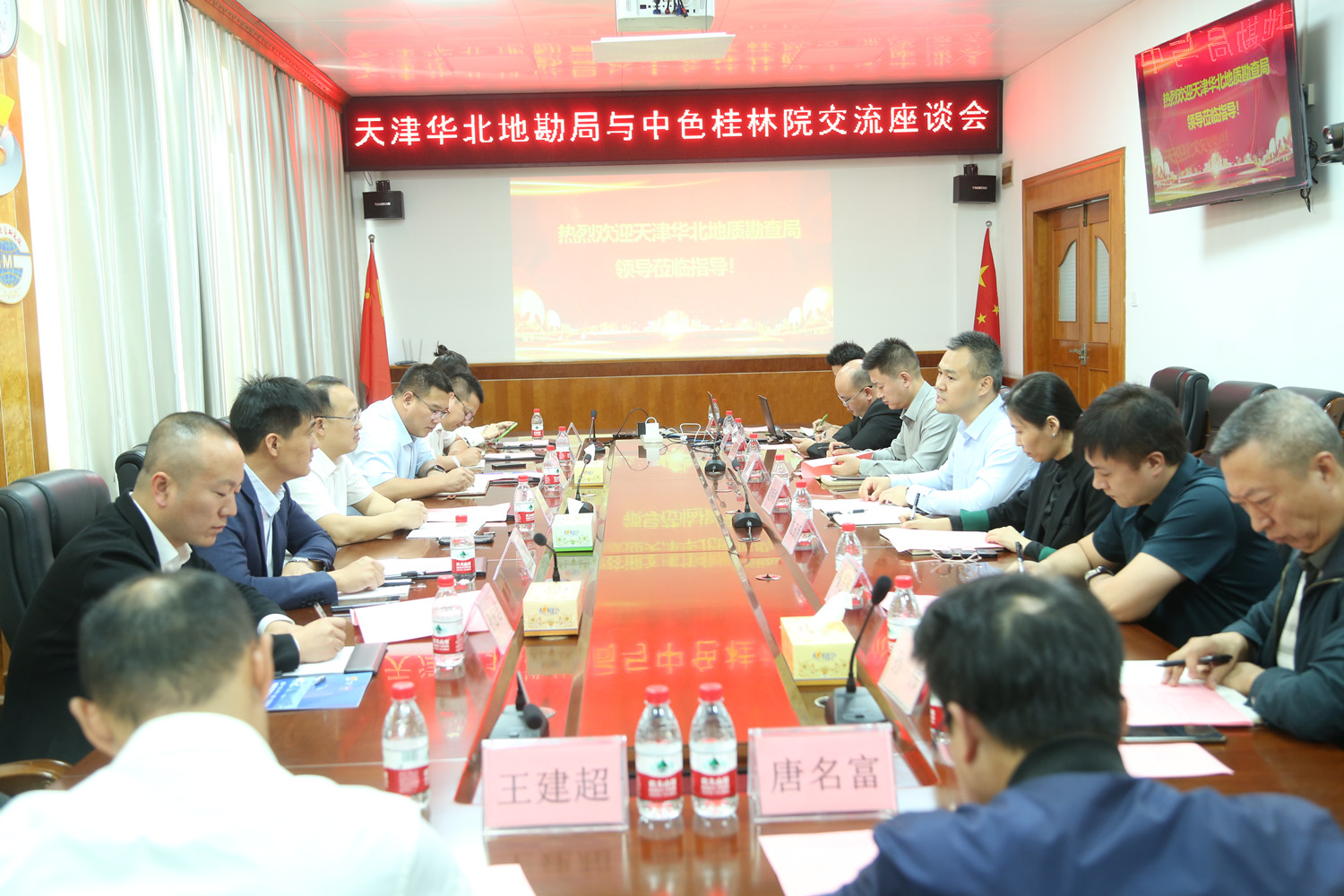 座谈会上,王铁军对中色桂林院的热情接待表示感谢,他表示,中色桂林院与天津华北地质勘查局同根同源、联系紧密,有着良好的合作前景,希望双方依托各自资源优势,在有关领域进一步拓展合作的深度与广度,实现互利共赢、共同发展。胡乔帆对王铁军一行的到来表示热烈欢迎,他表示中色桂林院将秉持合作共赢理念,发挥科研优势和人才优势,与天津华北地质勘查局一道,在技术研发、产业发展等方面加强合作,不断增强核心功能,提高核心竞争力,在服务国家战略中做强做优做大,为加快发展新质生产力作出更大贡献。