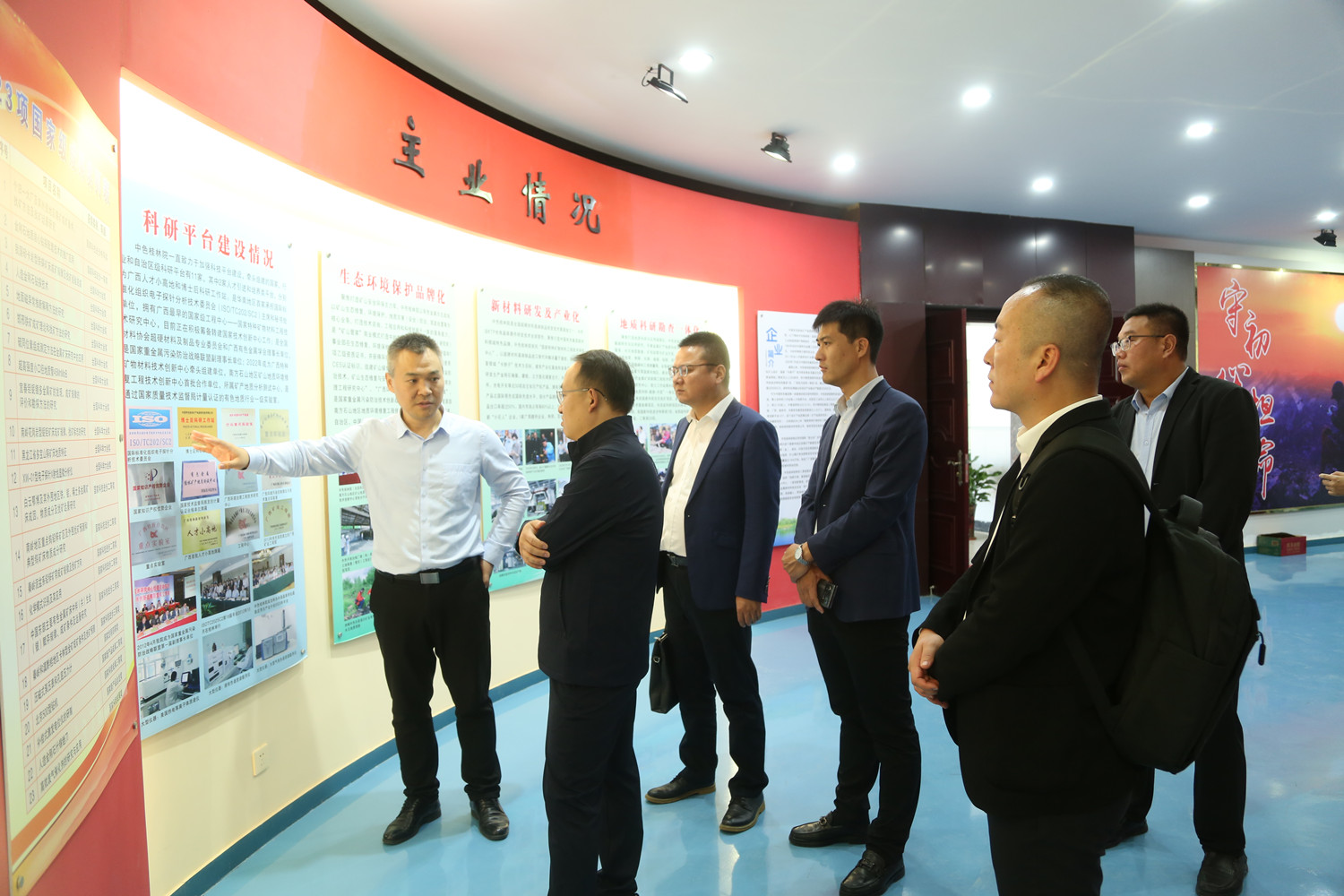 会上,双方围绕地质勘查、矿业开发、矿山治理等方面进行深入探讨。调研期间,王铁军一行还参观了生态环境事业部、测试中心部分实验室,矿产地质事业部部分实验室、企业文化墙以及中色桂林院陈列馆,详细了解了中色桂林院的历史沿革、科技创新、技术服务及业务发展等情况。