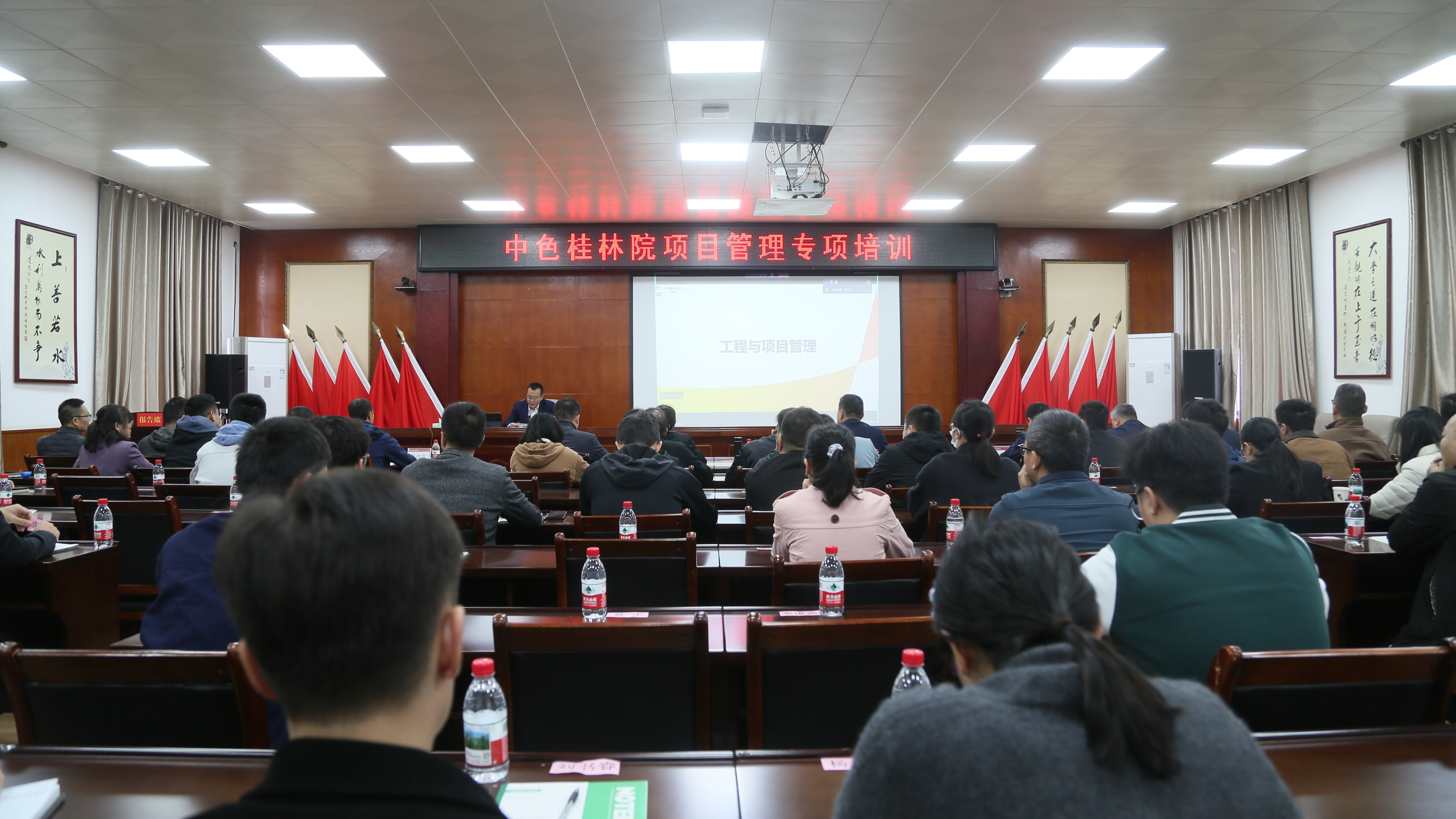 为全面提升项目管理水平,10月24日,中色桂林院举办项目管理专项培训,党委委员、副总经理赵延朋出席培训会并做动员讲话。本次特邀中国十五冶金建设集团有限公司(以下简称“中国十五冶”)首席专家田可耕、商务合约部副主任蔡军现场授课,培训采取“现场+视频”模式,共70余名员工现场参与、30余名员工线上同步学习。