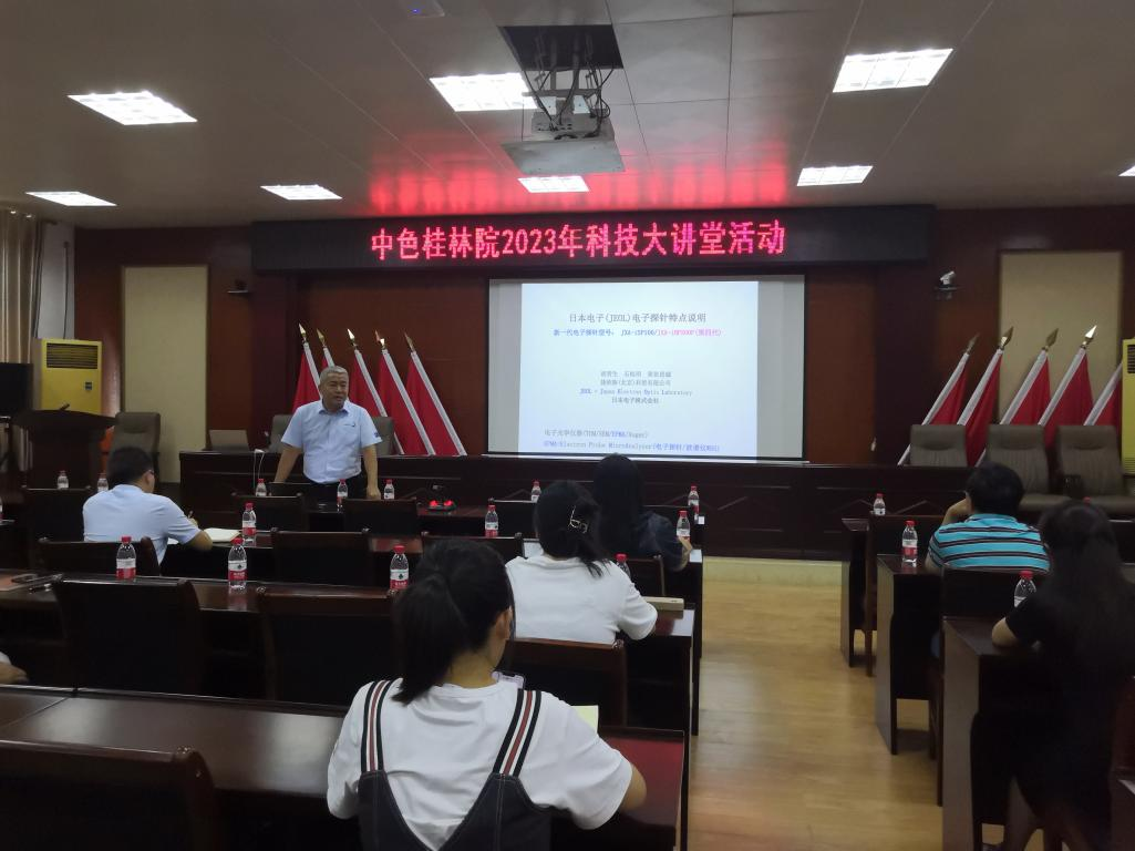 2023年9月6日,公司举办本年度第二次科技大讲堂活动,特邀日本电子中国代理产品部经理/电子探针部部长胡晋生老师、广西科泰智航知识产权代理事务所合伙人李秋琦专利代理师,分别从电子探针的原理和在地质、材料领域的应用,专利的申请与保护等方面进行科普讲解,得到与会科技人员的一致好评。