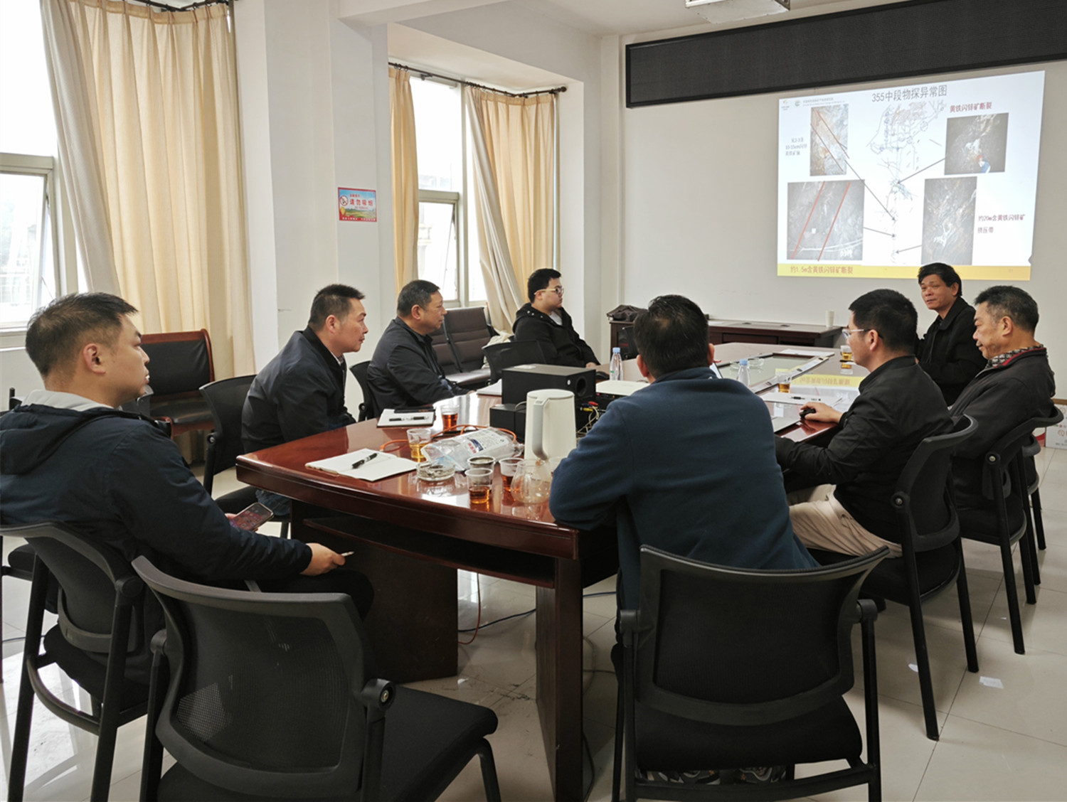 调研组针对项目坑内重力、激电测量初步成果,结合矿区地质特征,亲临455-305四个中段开展物探异常检查工作,对物探异常逐一检查、现场研讨和教学,研判“矿致”与“非矿致”异常,对下一步圈定找矿靶区起到重要指导作用。项目组成员与华锡矿业公司负责人、铜坑矿业公司技术专家和生产技术科人员就项目阶段性成果进行交流。双方就下一步合作达成初步共识。